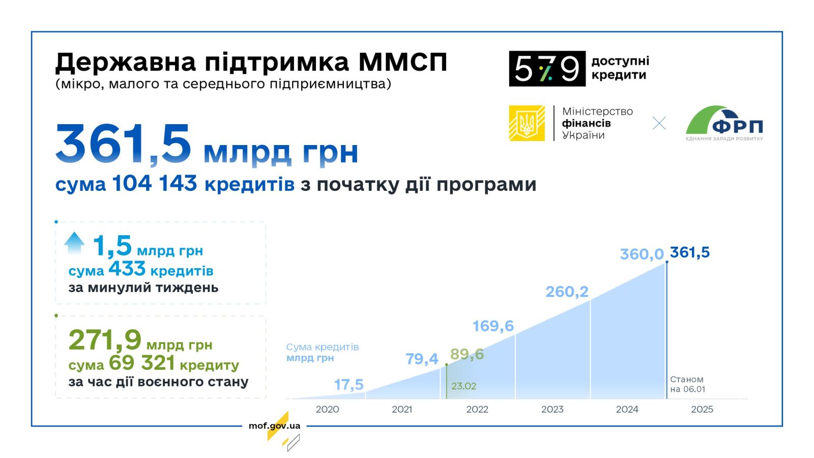 Мінфін: за минулий тиждень підприємці отримали 433 пільгові кредити на 1,5 млрд грн за держпрограмою «Доступні кредити 5-7-9%»