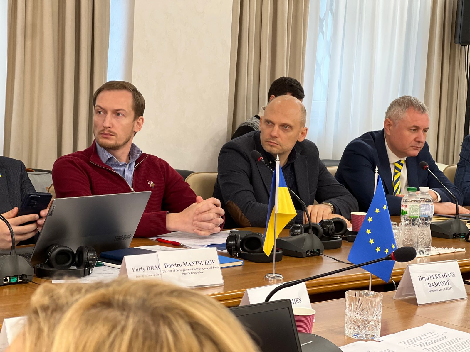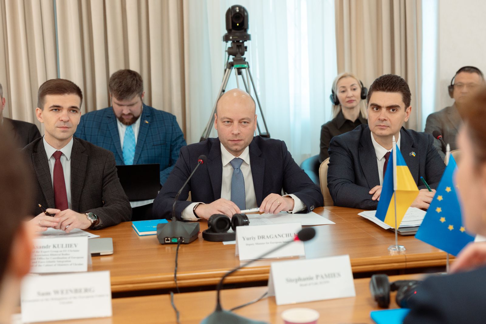 Делегацію ЄС очолювали Директорка директорату ECFIN D «Міжнародні економічні та фінансові відносини, глобальне управління» Анніка Еріксгаард і керівниця підрозділу ECFIN D2 «Країни сусідства та макрофінансова допомога» Стефані Пам’є.