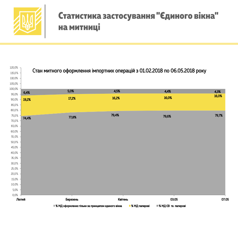 Зокрема, за період з 01 лютого по 30 квітня 2018 року кількість МД, оформлених за принципом “єдиного вікна”, склала: