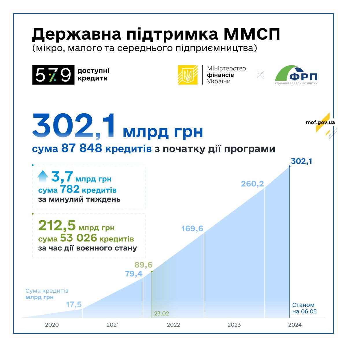 За Державною програмою «Доступні кредити 5-7-9%» ФРП уклав угоди про співробітництво з 45 банками. Держава продовжує здійснювати всі необхідні компенсаційні виплати на користь бізнесу за укладеними кредитними договорами у межах Програми.