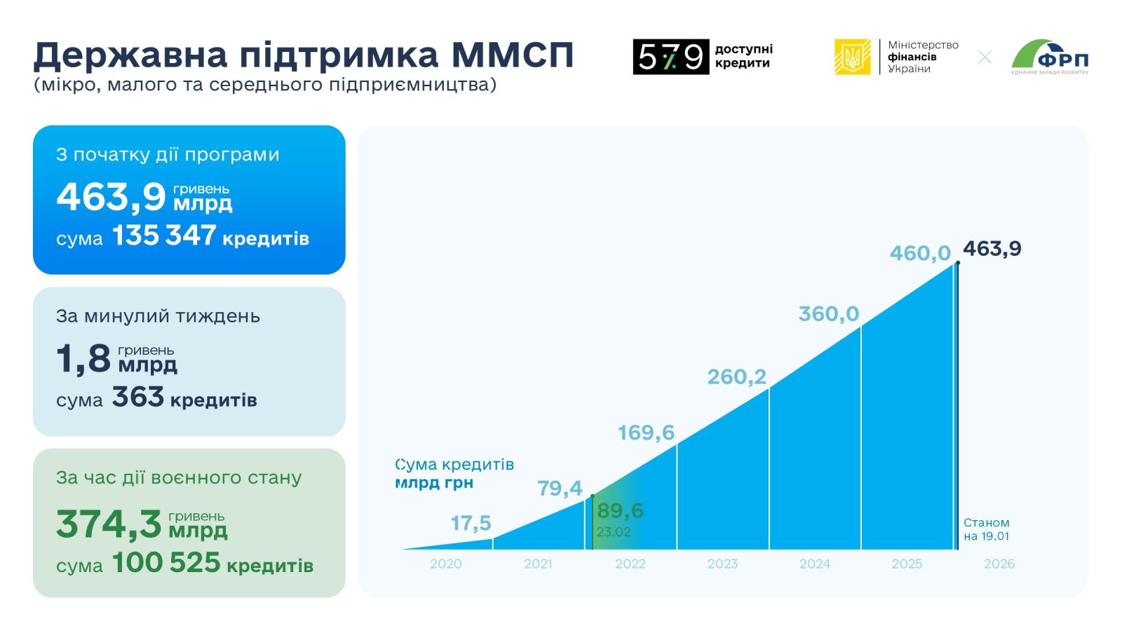 Усього з моменту старту Програми підписано 135 347 кредитних договорів на 463,9 млрд грн, з них банками державного сектору економіки – 93 341 договів на 213,4 млрд гривень.
